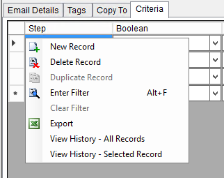 5. Select the Record that needs to be edited or right-click the grid below Step and select New Record to add a new record