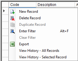 3. Enter a Search parameter, such as Code Type  (If applicable)