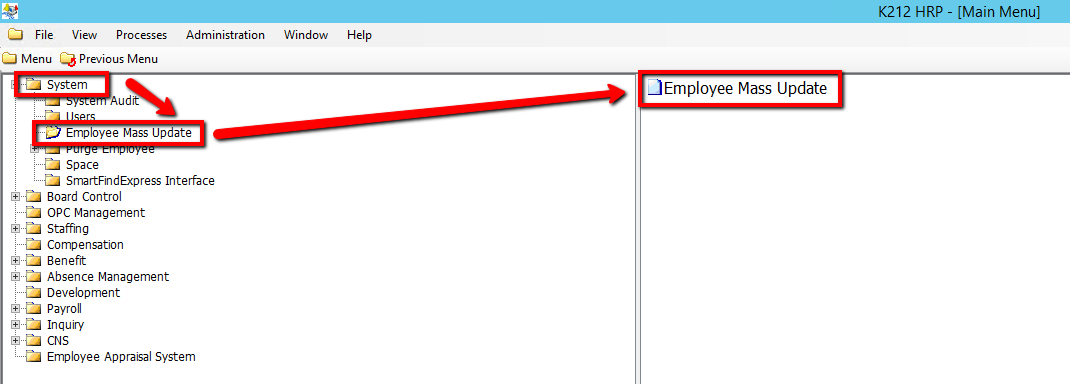 2. Click on Employee Mass Update