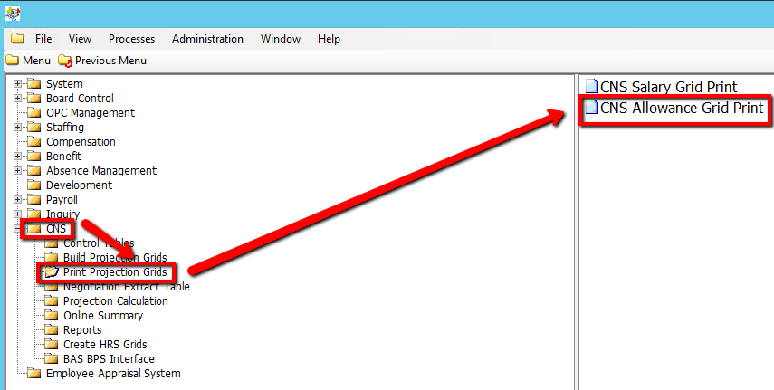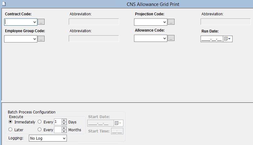 This process produces a listing for all levels (up to 10) of an Allowance Grid for a specified Employee Group. Before submitting this background process, you must specify the run parameters