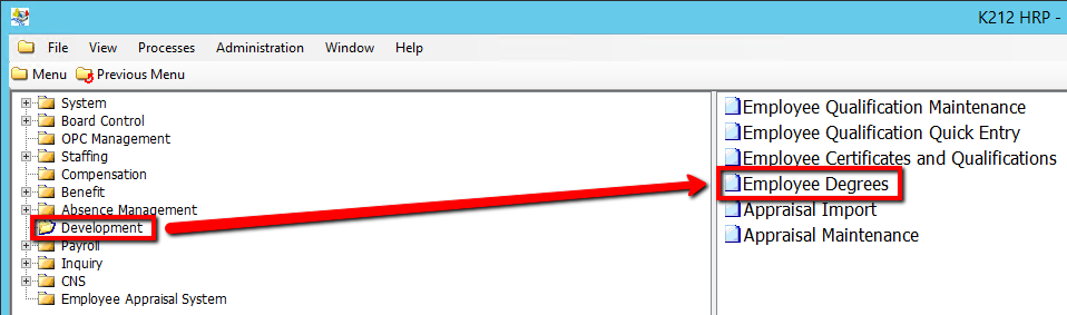 2. Click on Employee Degrees