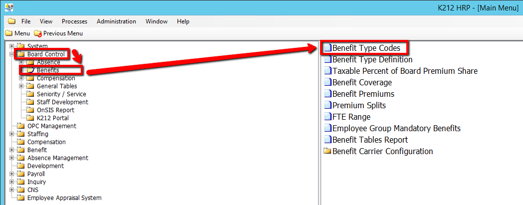 Use the following steps to Add/Modify Benefit Type Codes: