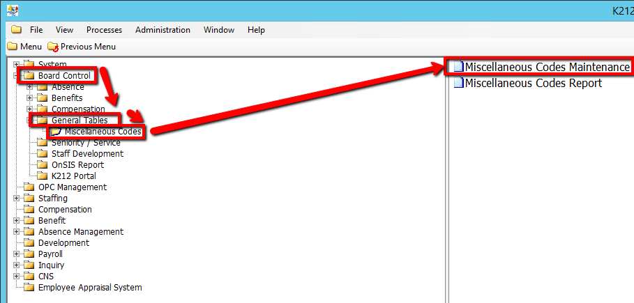 5. Click on Miscellaneous Codes Maintenance