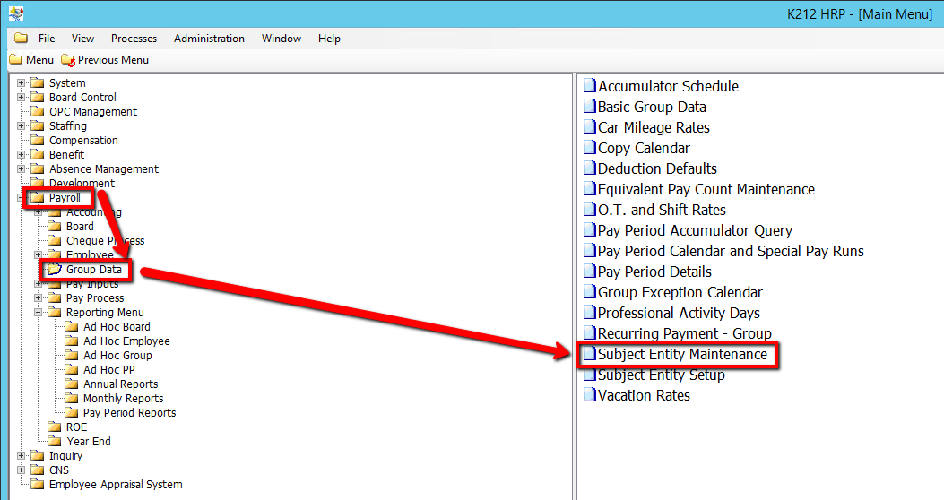 3. Click Subject Entity Maintenance