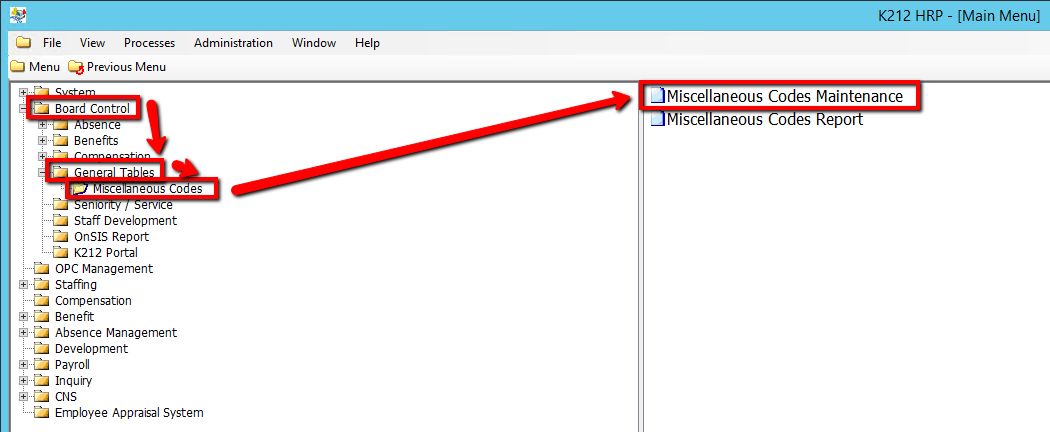 4. Click on Miscellaneous Codes Maintenance
