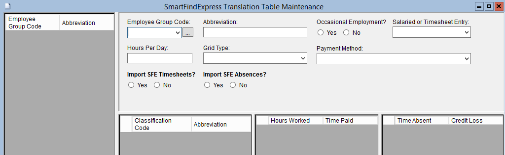 This information is used by the SmartFindExpress Job Translation process when importing timesheets and absences from the SmartFindExpress Job Information file.