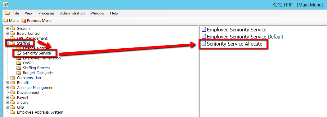 Use the following steps to Allocate Seniority/Service Credits for Current Employees: