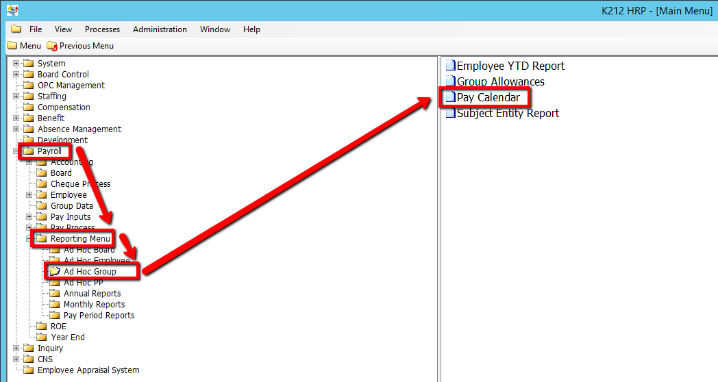 This process produces the Pay Period Calendar Report which outlines pay calendar information of designated Employee Groups maintained on the system.