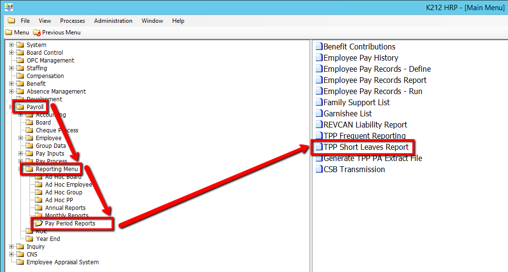 This process creates a report that includes specific data for TPP Short Absence Reporting.  This report will show DNP data where OMERS_LEAVE_TYPE = SH.