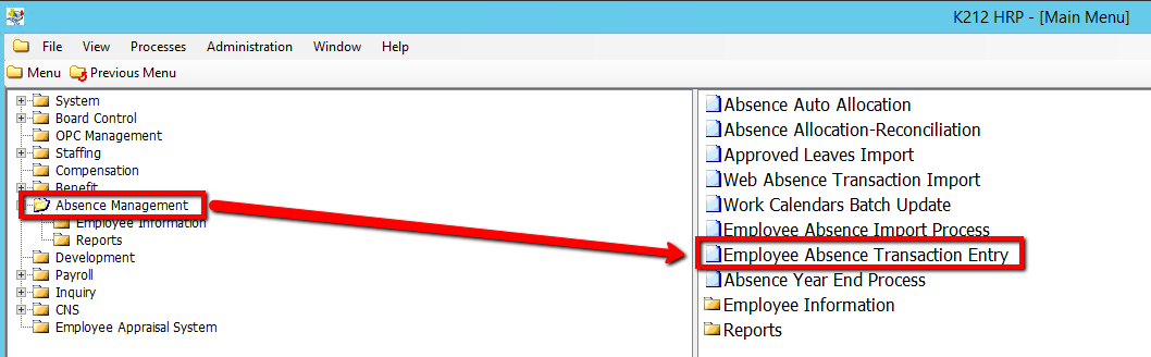 2. Click on Employee Absence Transaction Entry