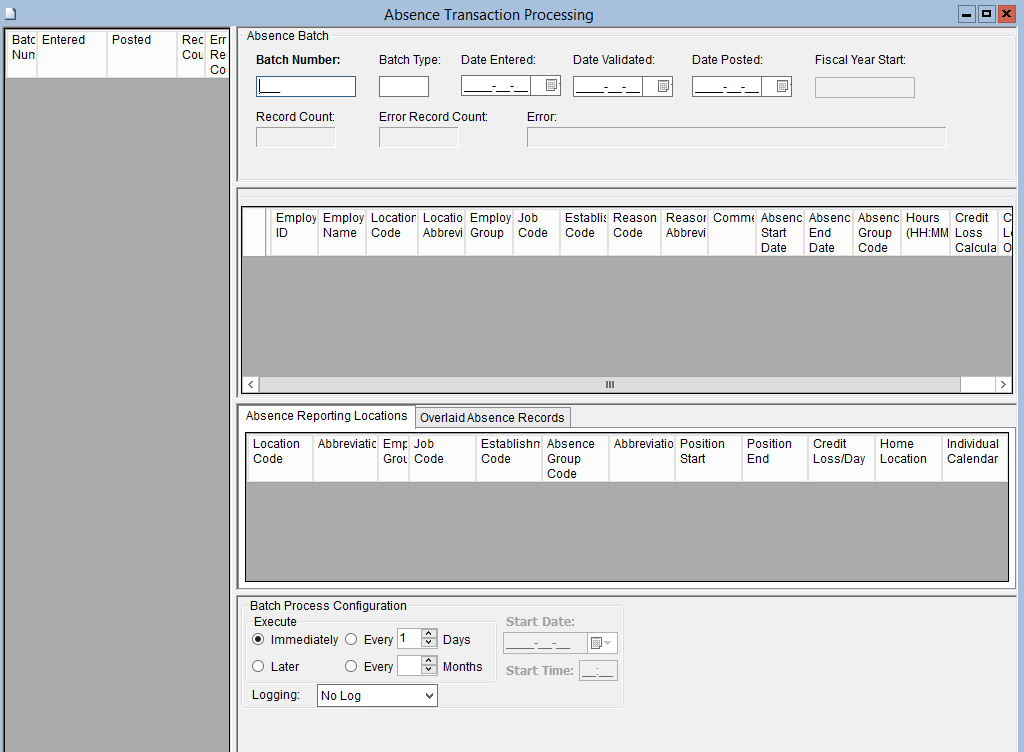 •Maintenance of Absence batches (ie. create a new batch or modify an existing batch)
