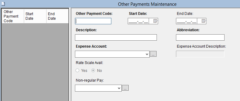 6. Select a current Other Payment Code to modify or Select New at the top of the menu screen to add a new code