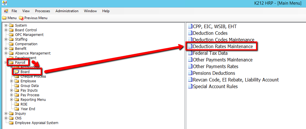6. Select a current Deduction Code to modify or Select New at the top of the menu screen to add a new record