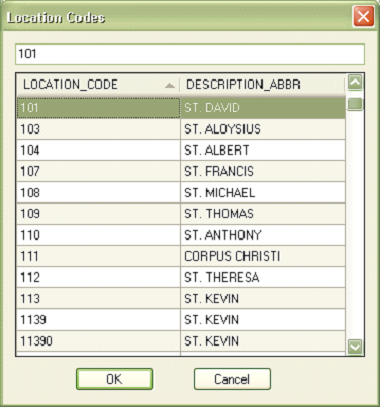 Pop up Lists are very similar to Drop Down Lists, only with the additional feature of a pop up window displaying a list of available codes and applicable descriptions.