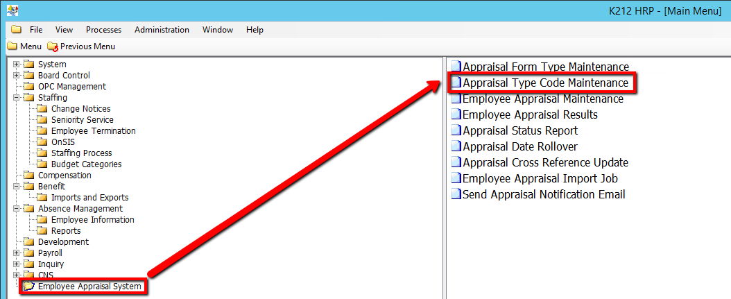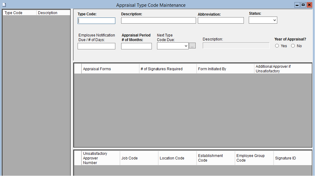 The User can now link the appraisal forms they created in the Appraisal Form Type Maintenance Screen to the Appraisal Type Code they have just created.