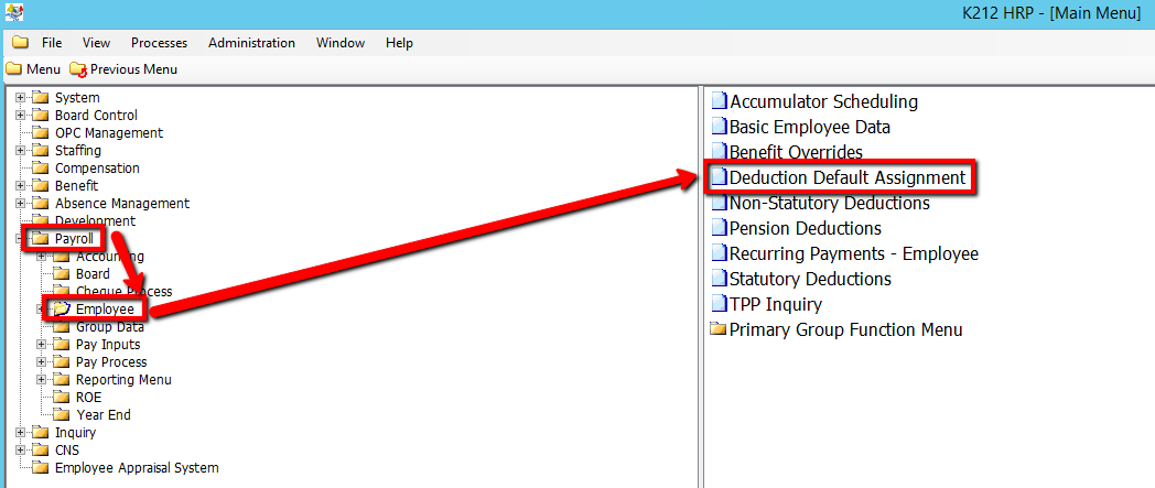 3. Click on Default Deduction Assignment