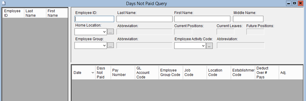 To View ALL Employee's, Simply click the Find button, with no parameters entered.