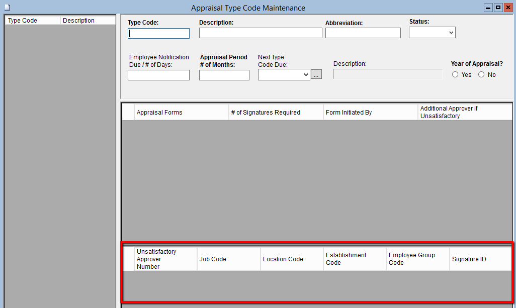 This field identifies the employee id of the individual who needs to sign the appraisal. If Signature ID is not used, the remaining fields need to be defined to specify the position of the individual who is required to sign the appraisal.  If all fields are entered including Signature ID, then Signature ID will be prioritized. Signature ID must belong to an existing employee ID.