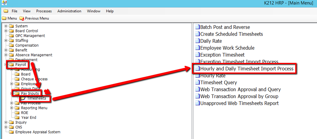 4. Click on Hourly and Daily Timesheet Import Process