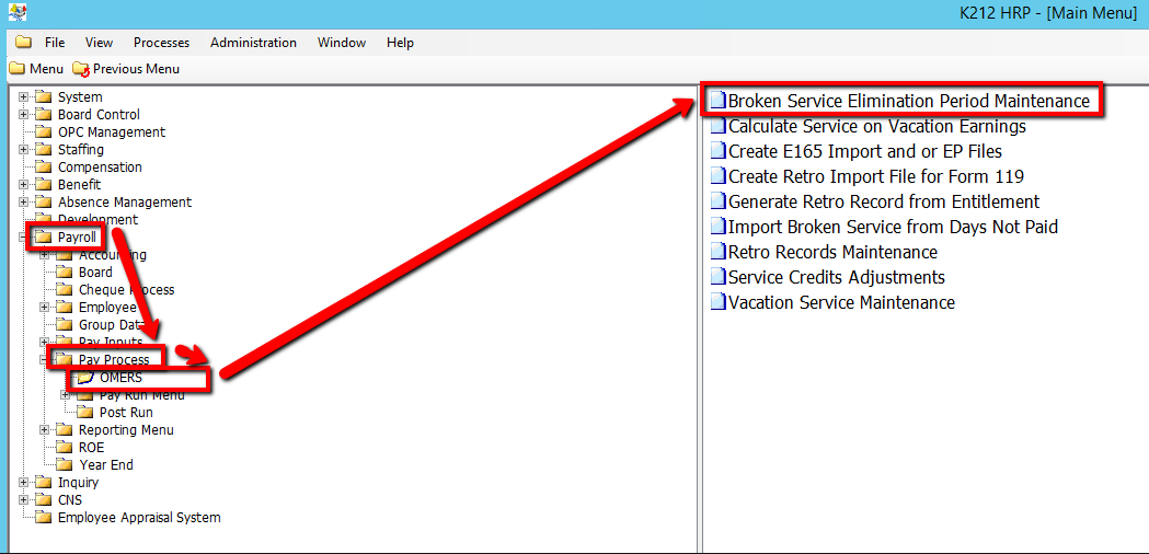 Use the following steps to Add/Modify OMERS Broken Service or Elimination Period Records: