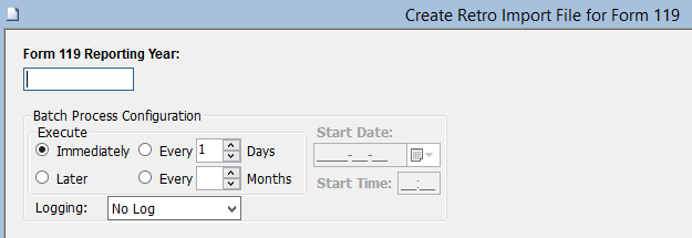 Use the following steps to Create a Retro Import File for Form 119: