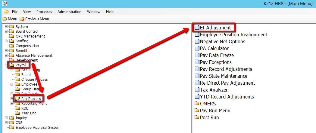 Use the following steps to Add/Modify EI Adjustments:
