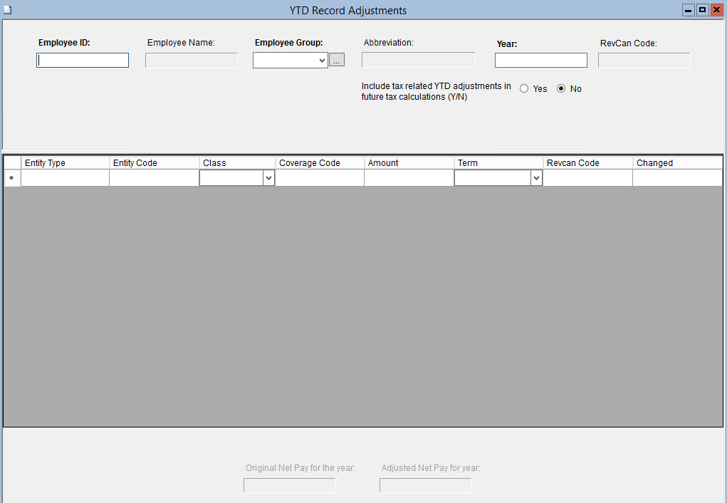 Use the following steps to Add/Modify YTD Record Adjustments: