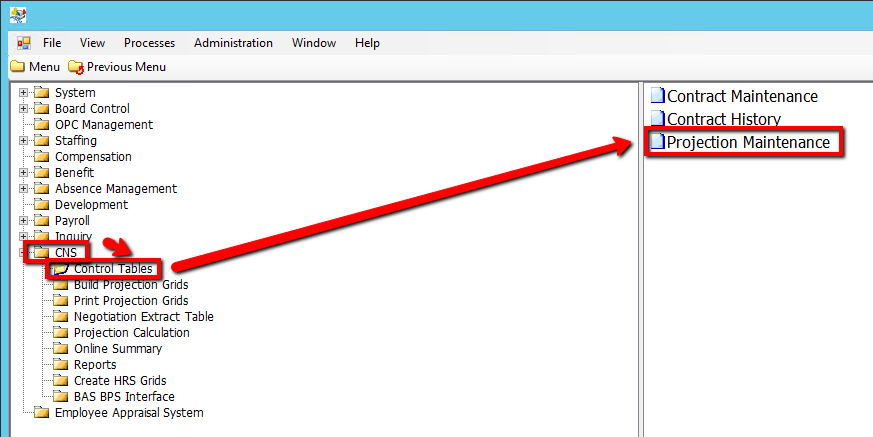3. Click on Projection Maintenance