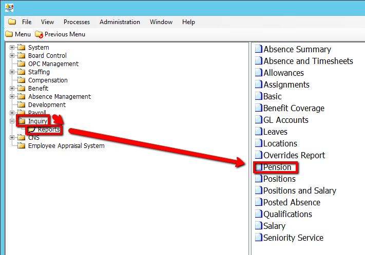 This screen produces the Employee Pension Report; which contains a list of Employees that match the user’s Selection Criteria.