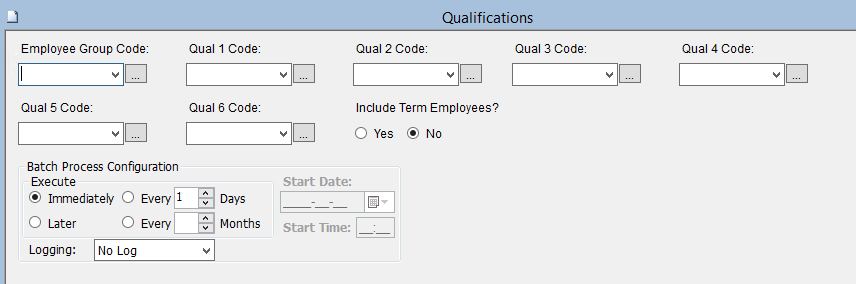 This screen produces the Employee Qualifications Report; which contains a list of Employees that match the user’s Selection Criteria.