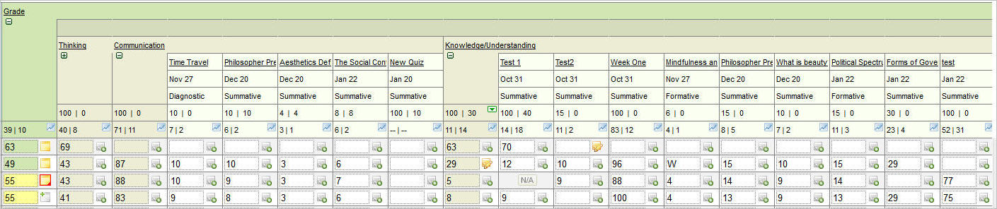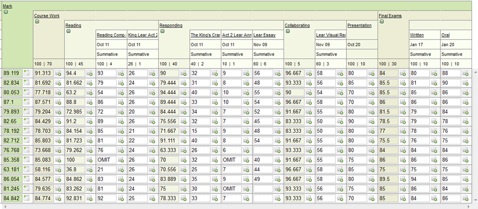 To help illustrate the potential of markbooks, here is an example of a markbook that is already set up.