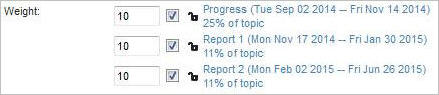 Note: When this setting is used, the Weight field (below), is not applicable and therefore the weight fields are removed from the interface. The term dates are still displayed for reference though.