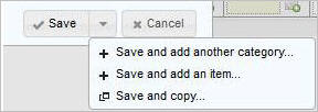 Save and add another category: Save the current category and leave the window open, ready for the addition of another category.