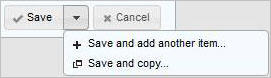 Once the category is defined, the category must be saved by clicking the Save button or choosing one of the Save Options that are presented upon clicking the drop down arrow to the right of the Save button, as shown below when saving a category for the first time. All options except “Save and copy” are also available when editing an existing category (since the edit category interface has a separate Copy button).