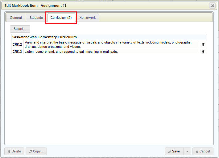 Some teachers may want to also expand the use of the markbook to tie curriculum