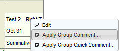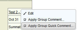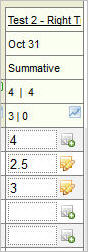 Show Markbook Comments: Shows the comment icons to the right of the mark entry cells for each markbook category and item. These icons allow the teacher to enter comments (published and/or unpublished comments) corresponding to each student's mark entry cell.