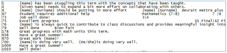 The teacher’s comments or the school’s comments can be exported into a text file. This file can then be imported into your school by another teacher, or into another Maplewood school by any teacher.