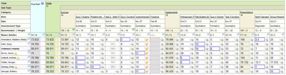 To help illustrate the potential of markbooks, here is an example of a markbook that is already set up.