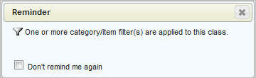 A reminder will appear when you choose your class from the list, if that class has a category/item filter applied:
