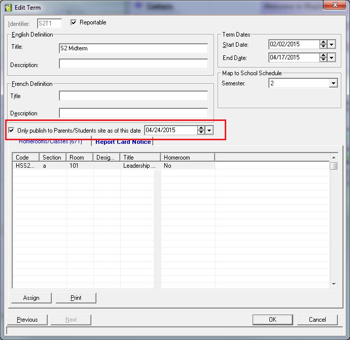 Please note, if this date is set on the last chronological term for a class (e.g., Semester 2 final), this date will also govern when the parents/students see the final, accumulated mark (if applicable to the school’s setup).