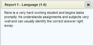 The teacher can make comments on a markbook item or category for each student. They can enter information into the unpublished area, for their own use, or they can enter information that will be visible to parents. The below screen shot shows a published (for parent/student) comment that has been entered for this student: