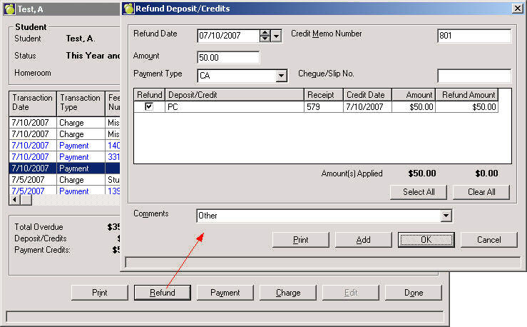 Click the Refund checkbox for which the refund applies, or click Select All to select more than one line.