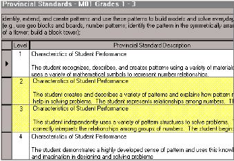 Click to see any Standard guidelines set by the Ministry. If there are any standards available, a screen similar to the following will appear: