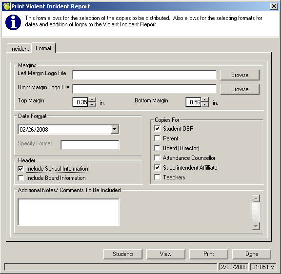 3b. Format Tab: Select the Logo Files, Date Format, Copies For and any Additional Notes/Comments to Be Included in the printout.