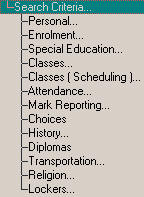 Under the Criterion Tree you will find the following criteria. Criteria followed by three dots means there is at least one additional criterion. When you select the lowest level of criterion, there will usually be a form to fill out.