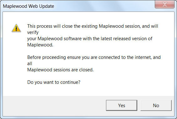 2. Click Yes to continue. You will see a Maplewood Web Update window like this: