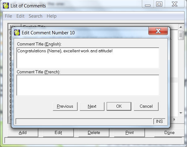 To add, click Add. To edit, select a comment and click Edit. You will see a box like this one: