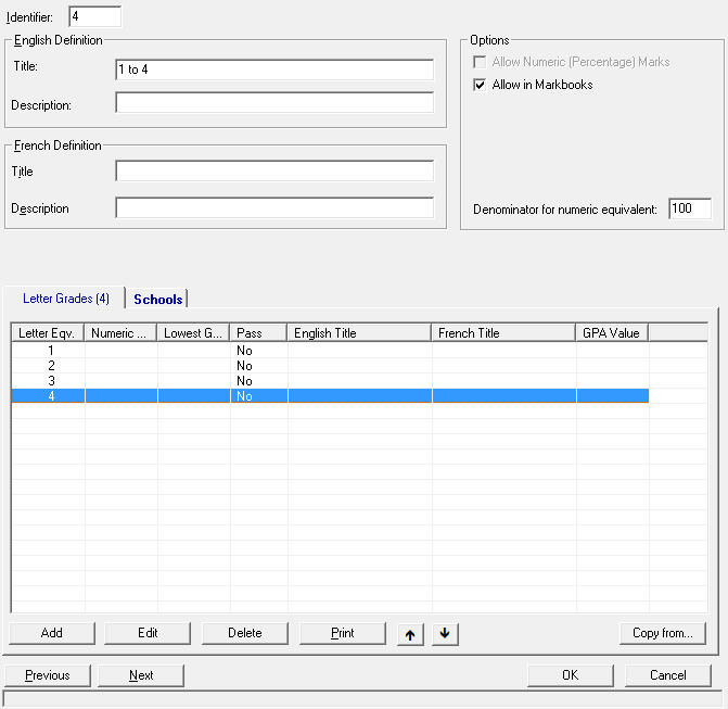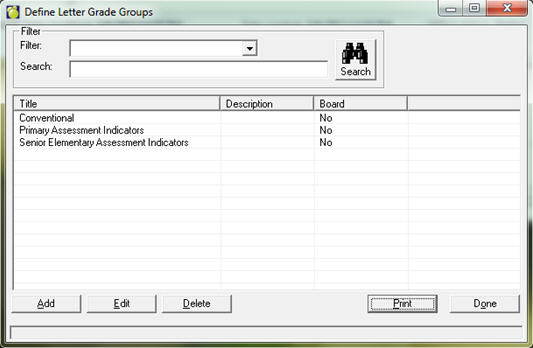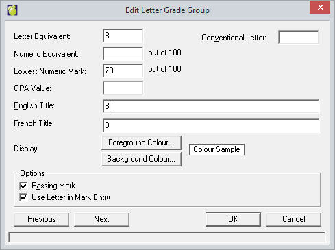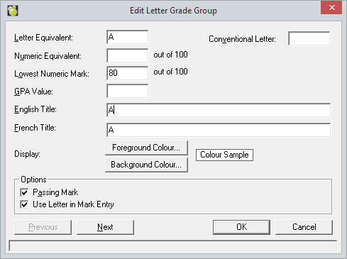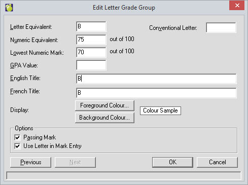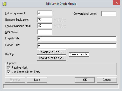 The default Letter Grade Group is called Conventional. This group can be left as-is or modified to suit your needs.