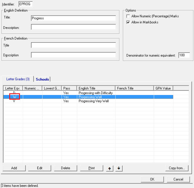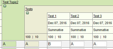 An unlimited number of letter grade groups can be defined, allowing a different set of letters or other characters for different topics/terms.