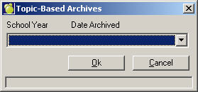 Select a database from the first box. This is archive is set up automatically n a clsmgr\archives folder when you choose File, Maintenance, Topic-Based Marks, Utilities. On this window, choose File, Maintenance, Archive Database.